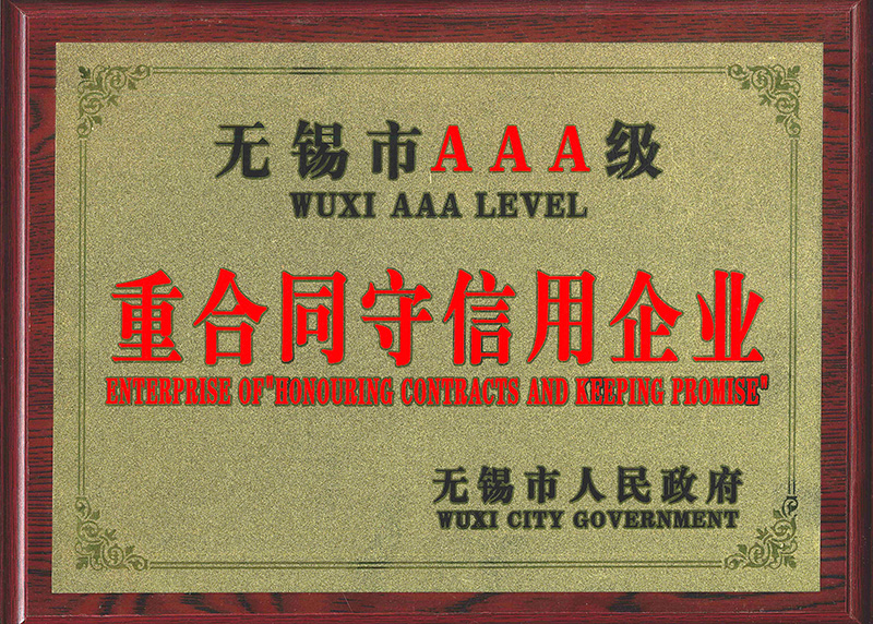 無錫市AAA級(jí)重合同守信用企業(yè)