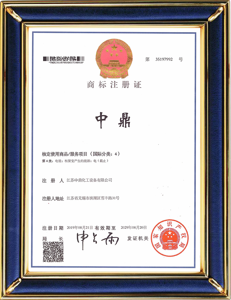 中鼎注冊(cè)商標(biāo)證(第4類)