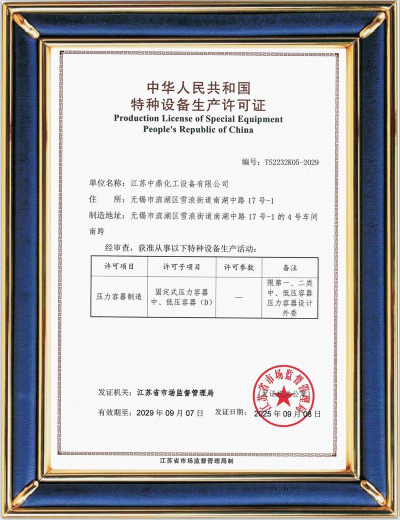 第一二類壓力容器制造證書