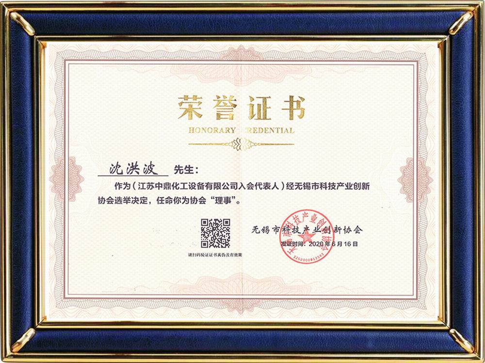 無錫市科技產(chǎn)業(yè)創(chuàng)新協(xié)會(huì)理事單位證書