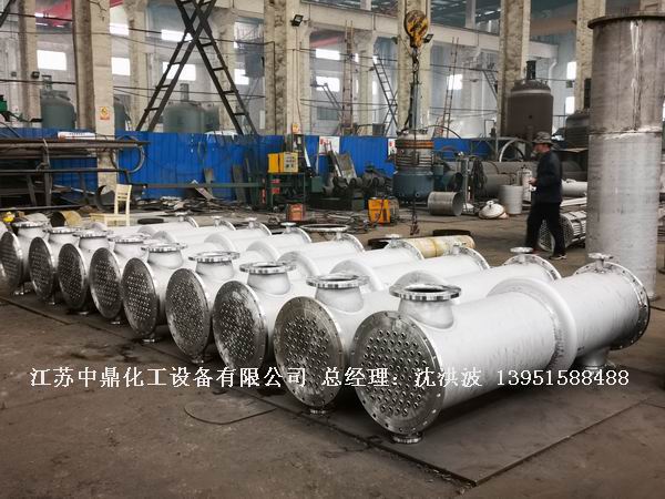江西某制藥企業(yè) 12臺(tái) 100平方不銹鋼翅片式冷凝器(立式)制造現(xiàn)場(chǎng)