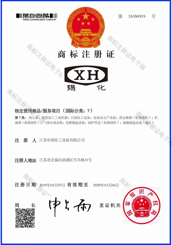 【中鼎喜訊】2019年4月8日經(jīng)過多年努力,中鼎企業(yè)終于拿到曾經(jīng)由1985年12月04日無錫縣化工設(shè)備廠注冊的“錫化”牌商標(biāo)的圖形商標(biāo),圓滿完成“錫化”老品牌的有效保護(hù)。為中鼎企業(yè)樹立品牌打下堅實的基礎(chǔ)!