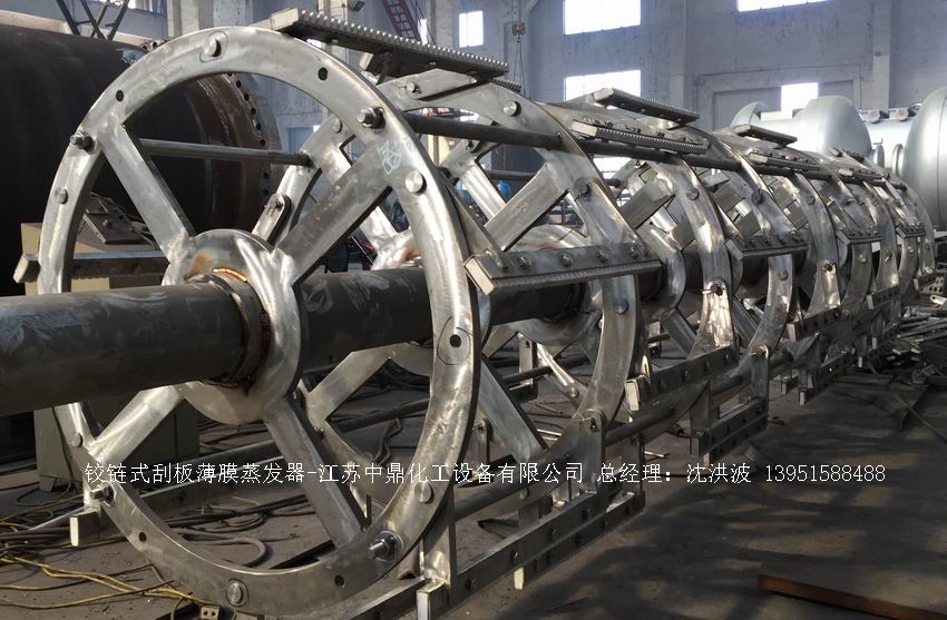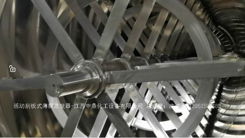 固定刮板:用金屬材料剛性連接在轉(zhuǎn)子上,長度與蒸發(fā)筒身相同,間隙1 - 2mm,加工安裝精度高,適用于特高粘度及易起泡沫物料。